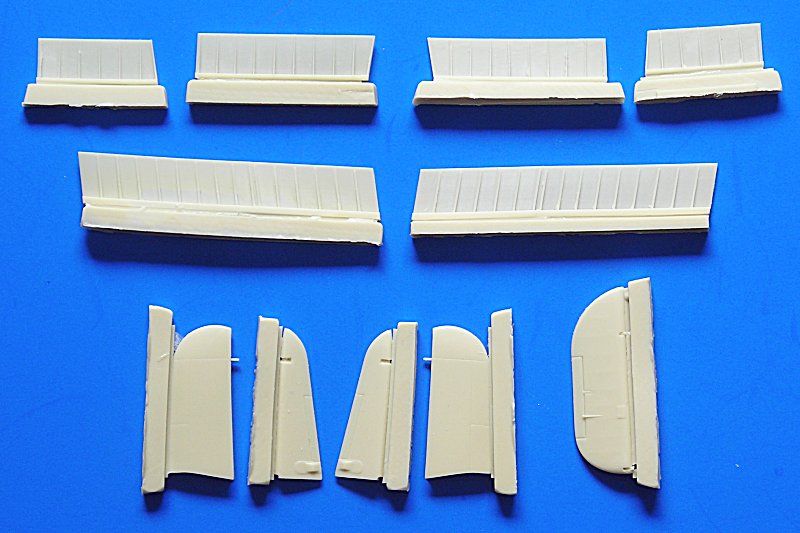Dieser Satz enthält genau das, was der Name verspricht. Die Höhenruder liegen als Ruderfinne und Steuerflächen bei und ersetzen die Bausatzteile. Für das Seitenruder liegt nur die Steuerfläche im Satz bei. Man muss also das Ruder aussägen, was aber die wenigsten Modellbauer, die einen solchen Satz benutzen wollen, vor ein Problem stellen dürfte. Querrudern liegen nicht bei.