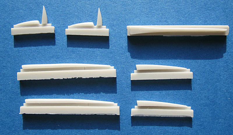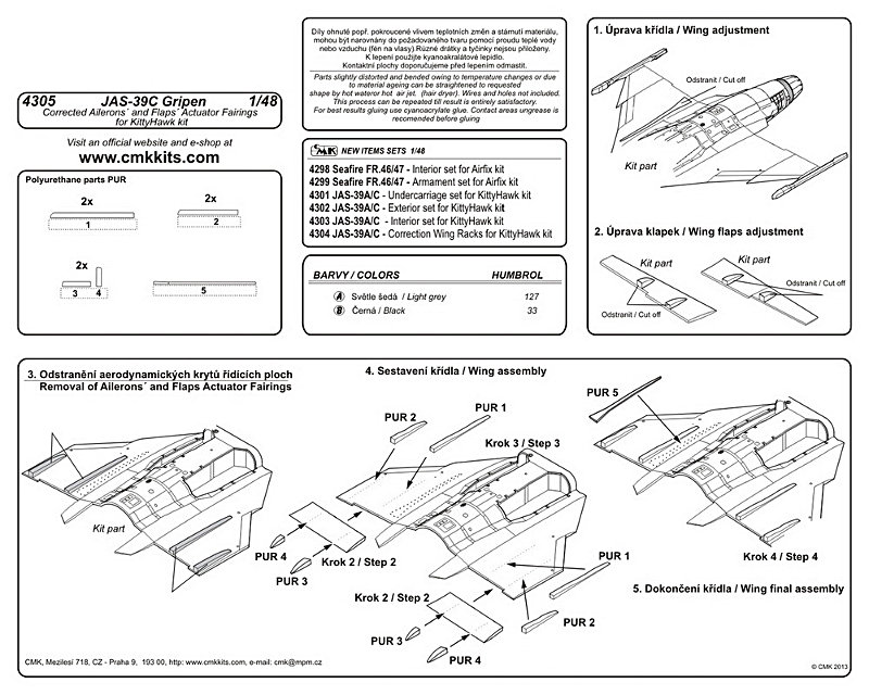 Im Satz 4305 hält CMK einen Korrektursatz für die falsch geformten Aktuator-Abdeckungen der Querruder und Landeklappen bereit. Der Satz scheint auf den ersten Blick recht einfach zu sein, allerdings erfordert des Anbringung das Abtrennen der Problemteile vom Flügel, was die Anwendung des Satzes erschwert.