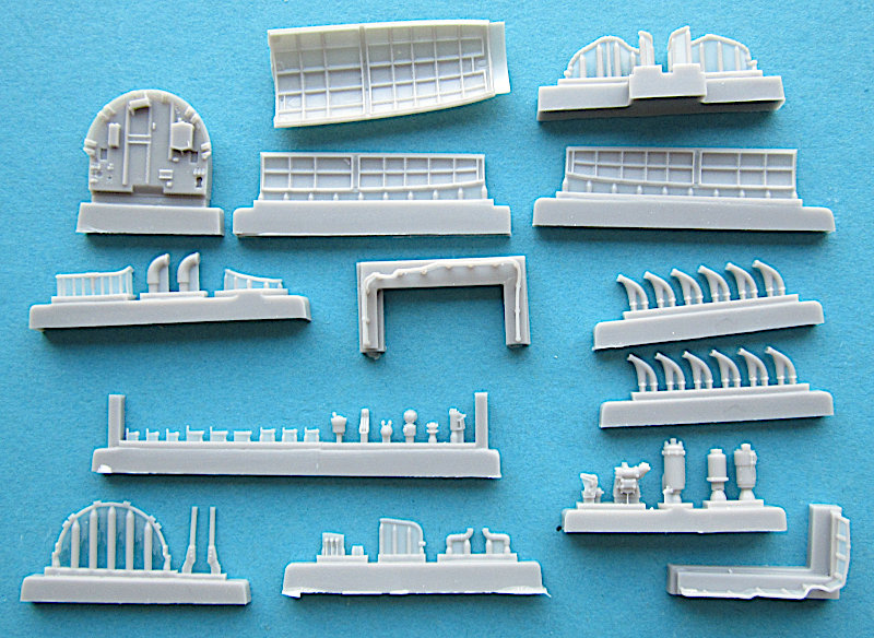 Der CMK Satz enthält 54 Teile einschließlich der Motorverkleidungen in dem typischen CMK-Resin. Wie immer empfehle ich den Einsatz einer sehr dünnen Modellbausäge für das Abtrennen der Angüsse (z.B. Hypercut Saw). Ebenso muss man zum Einbau des Satzes vom Rumpf einige Paneele abtrennen, auch hierfür empfehle ich Rasierklingen- oder Fotoätzteilsäge bzw. das genannte Produkt. Wo zu sägen ist, zeigt die Bauanleitung.