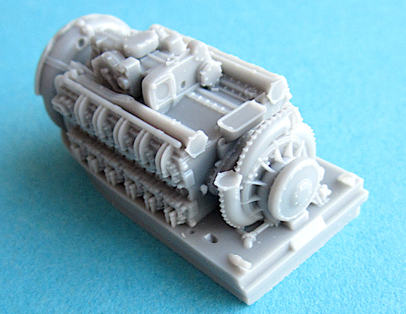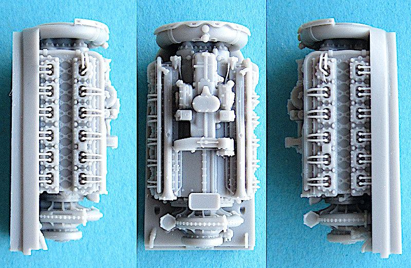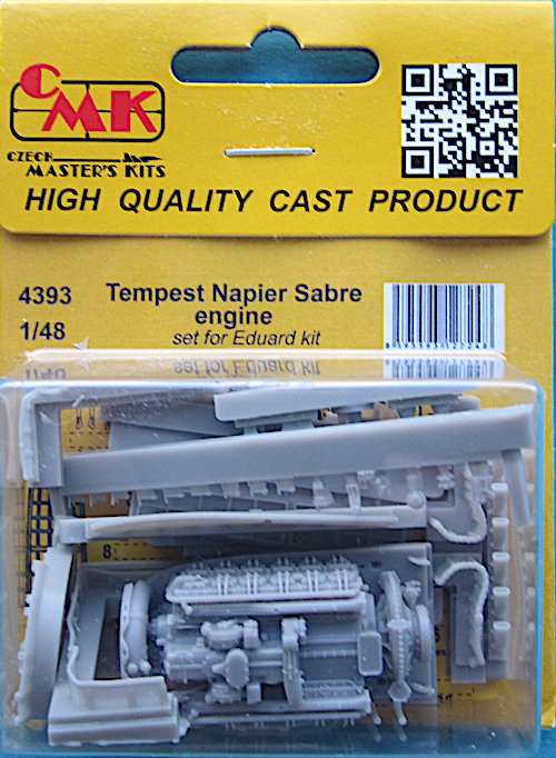 Zur Vereinfachung des Baus hat sich Eduard vor einiger Zeit entschlossen, bei den eigenen Bausätzen die Option für offen darzustellende Motoren ausschließlich über Zubehörteile auszugestalten. Diese Herangehensweise bietet auch anderen Herstellern die Möglichkeit entsprechende Produkte anzubieten. Die befreundete Konkurrenz von CMK nutzt diese mit diesem Motorsatz, zumal die Entwicklung der Tempest auch ein gemeinsames Projekt war. Das Napier Sabre Triebwerk ist ein riesiger Klotz um den die Tempest quasi herumgebaut wurde. Der kompakte Motor ist daher auch „formatfüllend“, auch wenn mit diesem Satz nur die obere Hälfte dargestellt wird.
