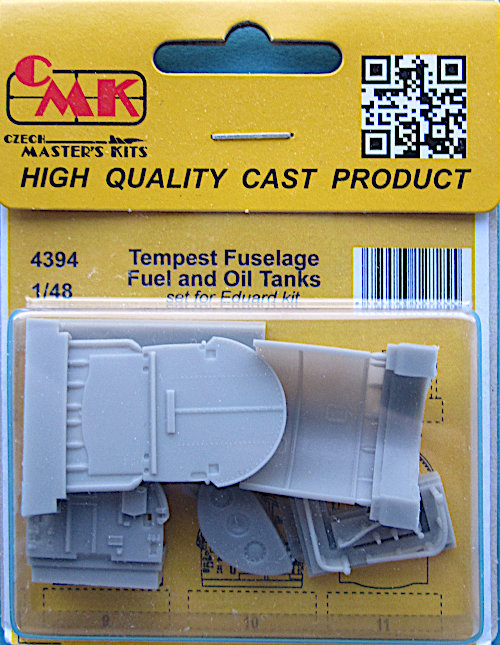 Zur Vereinfachung des Baus hat sich Eduard vor einiger Zeit entschlossen, bei den eigenen Bausätzen die Option für offen darzustellende Motoren ausschließlich über Zubehörteile auszugestalten. Diese Herangehensweise bietet auch anderen Herstellern die Möglichkeit entsprechende Produkte anzubieten. Die befreundete Konkurrenz von CMK nutzt diese mit diesem Satz, zumal die Entwicklung der Tempest auch ein gemeinsames Projekt war. Der Bereich zwischen Triebwerk und Cockpit ist mit Treibstoff und Öltanks ausgefüllt. Diese werden mit diesem Satz in den Fokus gerückt.