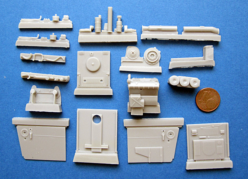 Dieser Satz für Tamiyas Tiger bietet dem Detail- und Dioramenfreund einen Motorraum. Im Prinzip baut man eine Box in das leere Heck , in welches dann der Motor mit Anbauten eingesetzt wird. Damit man davon später auch noch was sehen kann, gibt es auch eine entsprechenden klappe für das Motordeck. Das Plastik muss an dieser Stelle natürlich ausgesägt werden. Wie es aussieht muss man auch den Bausatz nicht weiter ausschleifen, so dass man ruhig einen Bausatz mit Metallwanne verwenden kann. Inzwischen hat Tamiya ja auch eine Plastikwanne für die neueren Modelle entwickelt (erstmals bei der Tiger I late Edition zu finden).