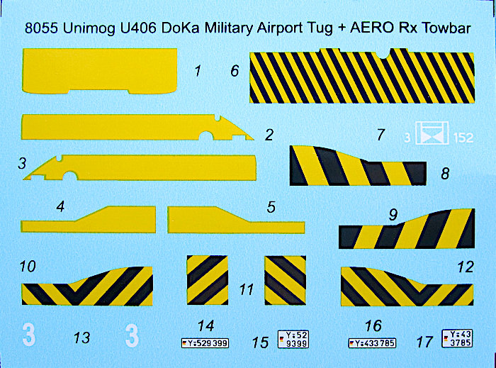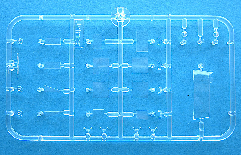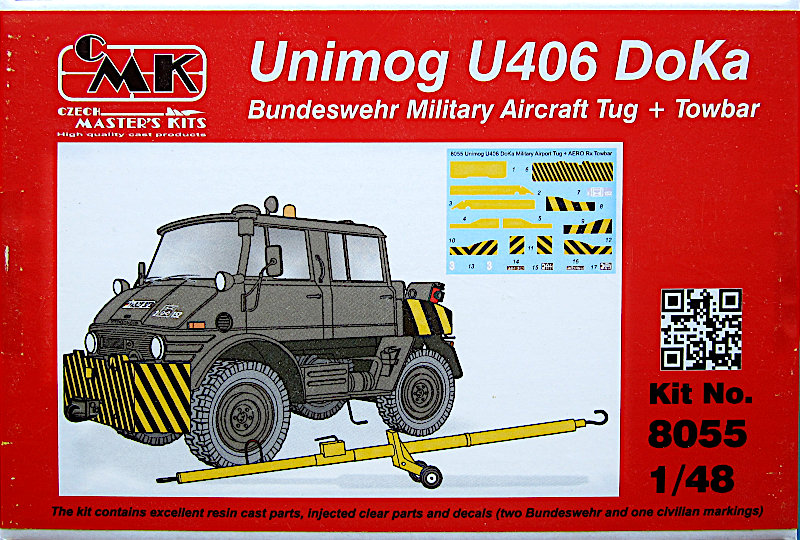 Bausatz: Dies ist also das zweite moderne 1/48er Fahrzeug von Bundeswehr Flugzeugschleppern, welches CMK herausbringt. Wie schon beim MAN merkt man ein wenig, dass es sich um ein "hochskaliertes" Modell handelt. Dies hat ein paar Nachteile in den Details, erleichtert aber auch den Zusammenbau. Andererseits gibt es beim Unimog deutlich mehr Details als beim MAN und auch die Scheinwerfer sind als Klarteile vorhanden. Das Instrumentenbrett ist am Stück mit dem Führerhausboden gegossen und hat leider auch keine Instrumentenskalen, auch auf dem Abziehbildbogen sucht man diese vergebens, Doch ich greife vor.
