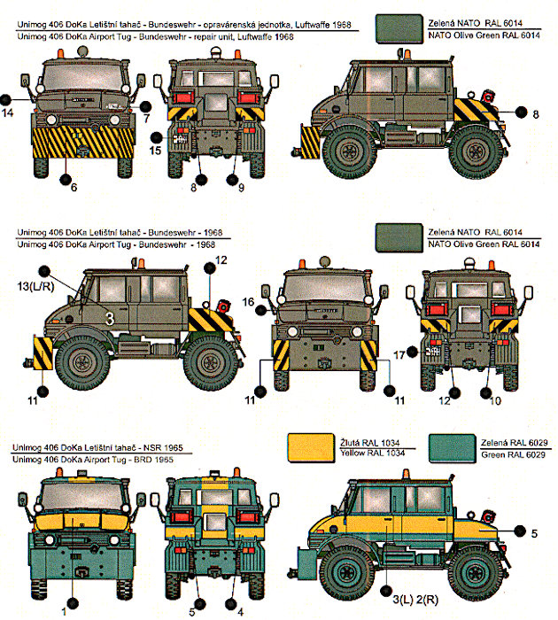 Vorbild: "Mit der Übernahme von Personal und Gerät des Bundesgrenzschutzes im Jahr 1956 durch die neu entstandene Bundeswehr kamen auch einige Unimog U25 der Baureihe 401 in Bundeswehrdienste. Sie dienten neben anderen Zwecken auch als behelfsmäßige Flugzeugschlepper. Im Rahmen der regulären Erstausstattung beschaffte die Bundeswehr für Luftfahrzeuge bis 30 Tonnen Gesamtgewicht den Hanomag Radschlepper vom R455/460 Typ ATK (ATK steht hier für Luftbereifung und Turbokupplung). Im Zivilsektor waren diese Fahrzeuge bereits unter der älteren Bezeichnung R55 ATK seit 1952 im Einsatz, unter anderem bei der holländischen Fluglinie KLM. Sie besaßen eine Voith TD 464 Turbokupplung. die ein nahezu ruckelfreies Anfahren erlaubt und ein vollverglastes Führerhaus.