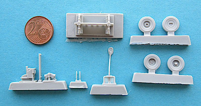Bausatz: CMK zeigt hier, was mit 3D-Design und -Druck, sowie mit der aktuellen Gusstechnik möglich ist. Der eigentliche Generator ist einteilig und rings um super detailliert. Auch der vergleichsweise kleine Anguss hilft hier. Auch Räder und Achsen sind auf einfachste Montage hin designed. Allerdings sind zur weiteren Detaillierung Fotoätzteile beigelegt, die zum Teil etwas Erfahrung erfordern. Die Gitter lasse sich wahrscheinlich leicht einpassen und auch die Spannbänder für den Tank sind mit etwas Geduld zu bewältigen. Das Vorbiegen der Laschen in Schritt 7 ist dann schon etwas schwieriger, aber auch für Anfänger nicht unmöglich.