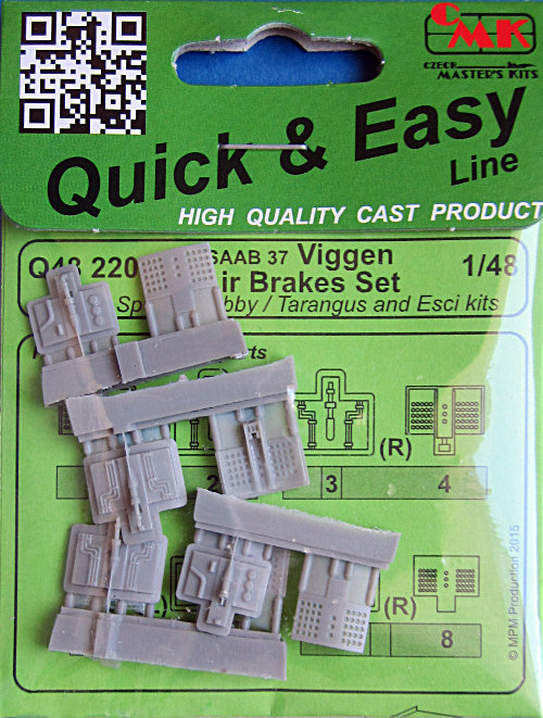 CMK hat in seiner Reihe von Zurüstteilen auch die Air Brakes für die hauseigene SAAB 37 Viggen (AJ37 Viggen, JA37 Viggen) herausgebracht. Dieser Satz ist zwar ebenfalls in der Quick and Easy Line erschienen, allerdinsg wird der Einbau nicht ganz so schnell und einfach gehen, denn dazu müssen der Rumpf und der Flügel an den entsprechenden Stellen geöffnet werden. Die Teile sind entsprechend mit L und R gekennzeichnet, so dass man die Seite nicht verwechseln kann.