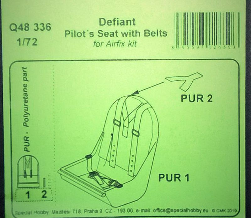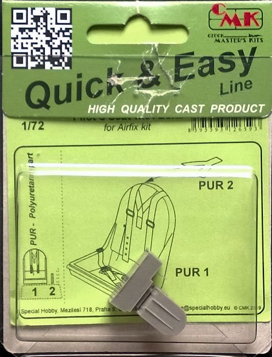 Die kleine Skizze ist selbsterklärend und zeigt die beiden Sitzteile auf dem Gussblock, sowie die Anbringung des Gurtes an der Rückenlehne des Sitzes. Entgegen dem Aufdruck "1/72" handelt es sich hierbei allerdings um den 48-er Maßstab, wie es schon die Artikelbezeichnung Q48 336 nahelegt. Nobody is perfect!