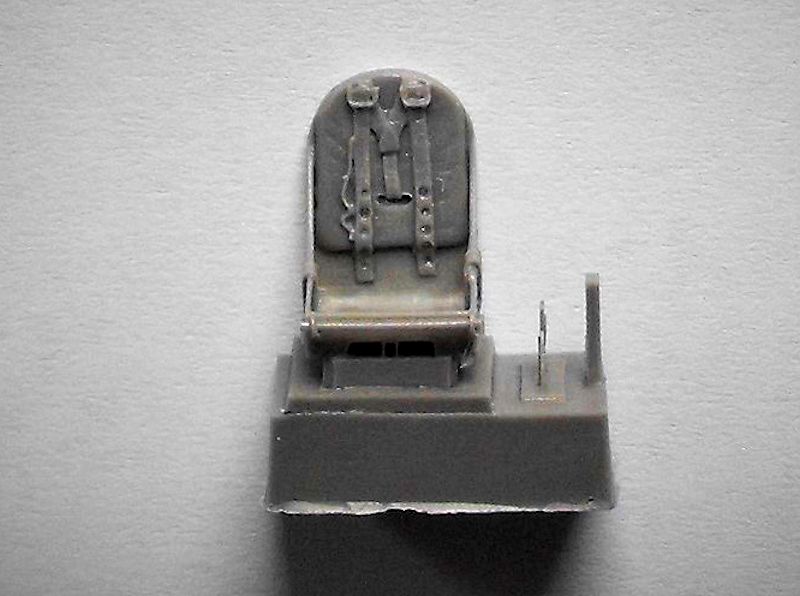 Fazit: Eine deutliche Verbesserung bezüglich der Detaillierung verglichen mit dem Sitz aus dem Bausatz für kleines Geld. Was mir besonders gefällt, ist die Hinzufügung eines kurzen, Y-förmigen Gurtstückes, welches von der Rückenlehne bis an einen Rumpfspant reicht wie beim Original.