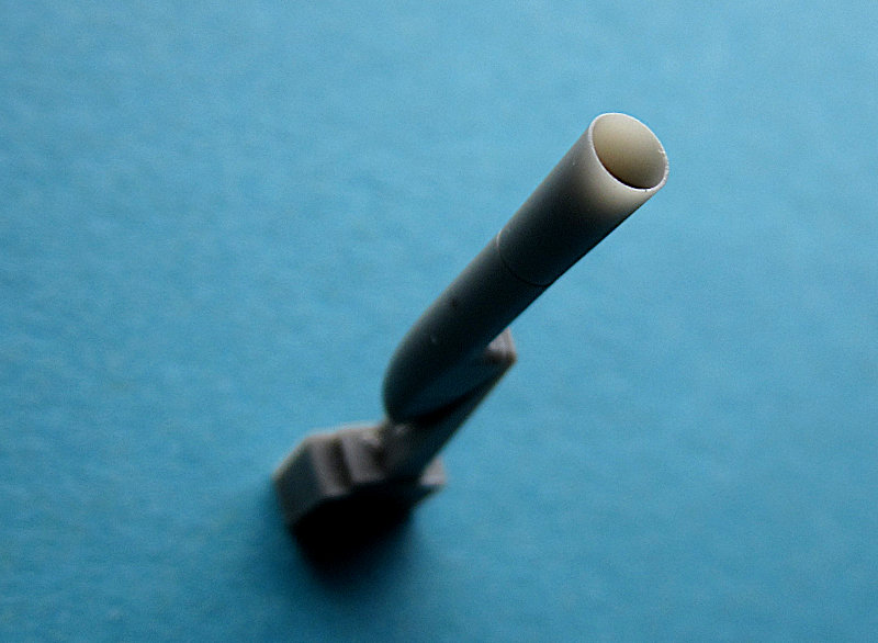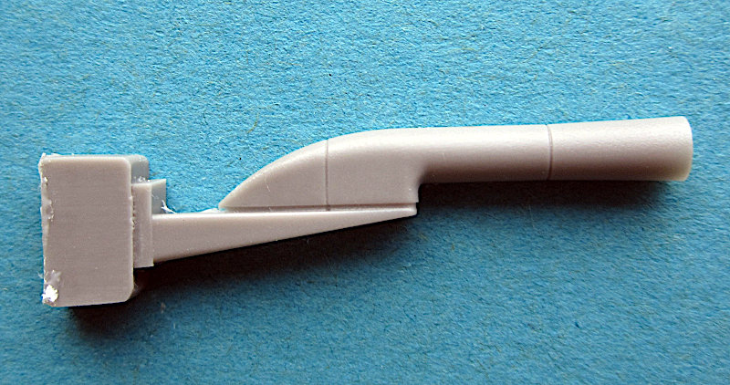 Der Laderlufteinlauf des Bausatzes (First Look) ist zweiteilig ausgeführt und eigentlich ganz gut zu gebrauchen. Für ungeschickte Leute (wie mich) bleibt aber das Problem, dass man häufig beim Zusammenkleben oder beim Verschleifen den kreisrunden Querschnitt eines solchen Rohres versaut und ein Oval erhält. Wer dem aus dem Weg gehen will, kann den Ladereinlauf mittels diesen Resinteils ersetzen. Die Einlauflippe ist ausgesprochen dünnwandig und sehr schön wiedergegeben. Das Abtrennen erfordert ein wenig Geschick mit der Säge, damit man nicht versehentlich ins Bauteil sägt. Insgesamt ist die Anwendung aber noch einfach, da nur ein Austausch der Bausatzteile erfolgt