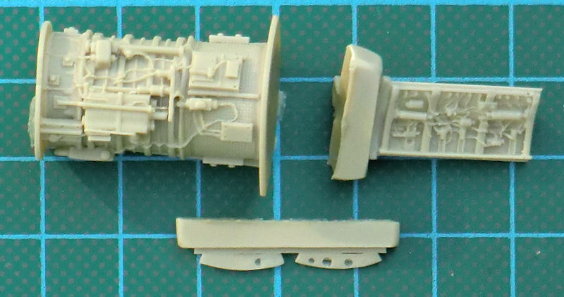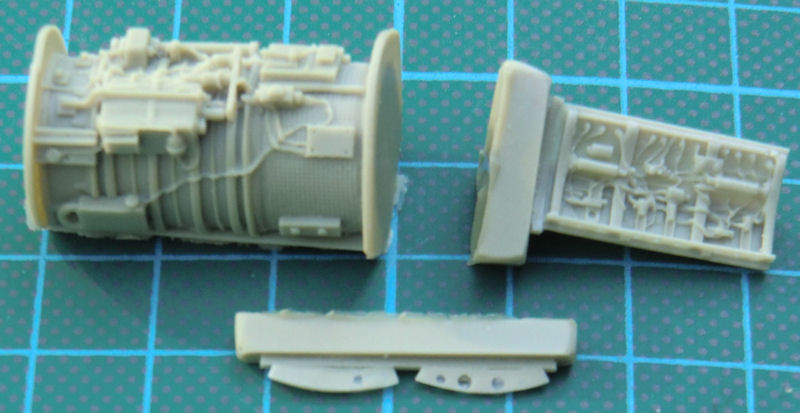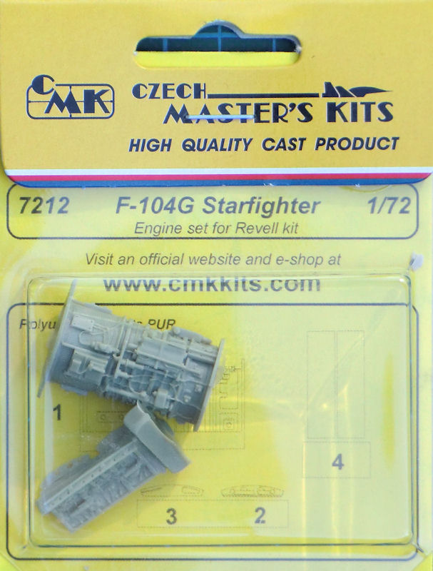 Für die Lockheed F-104G Starfighter von Revell hat CMK ein recht Detailset für das Triebwerk herausgebracht. Es enthält vier sauber gegossene Resinteile. Damit kann ein Triebwerksausschnitt samt der dazugehörenden Klappe dargestellt werden.