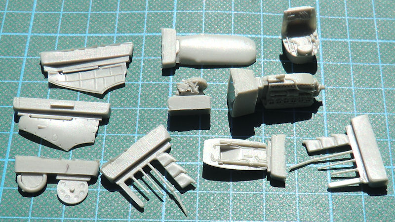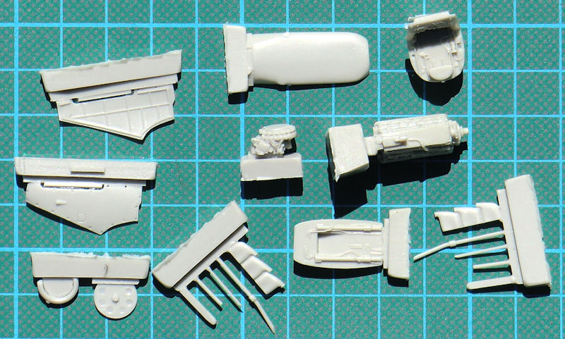 Die drei Motorhauben sind auch sauber und dünn gegossen. Natürlich haben sie auf der Innenseite auch schöne vorbildgetreue Strukturen und sie sind sehr dünn. CMK liefert Farbangaben für das Humbrol-System.