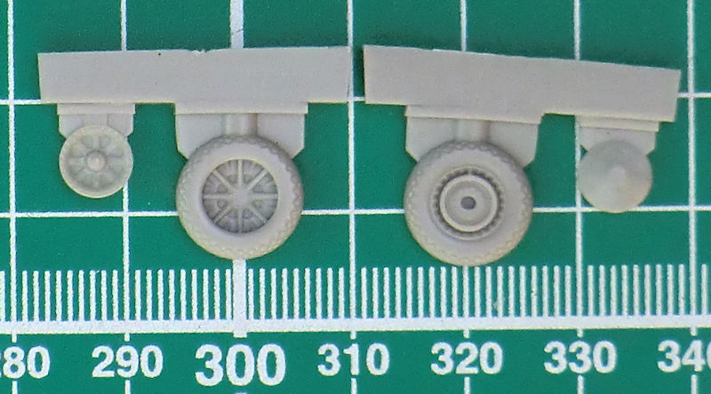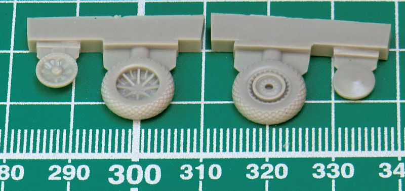 Der Guss ist tadellos und das Reifenprofil ist etwas zu stark wiedergegeben. Diese Teile sind auch im Bausatz von special hobby der SB2C-5 enthalten.