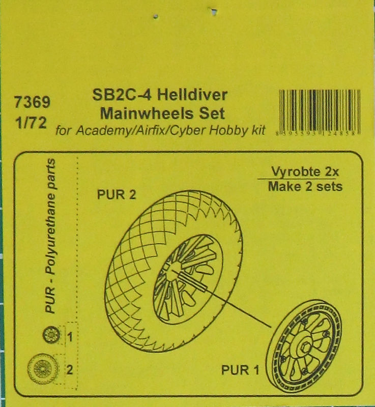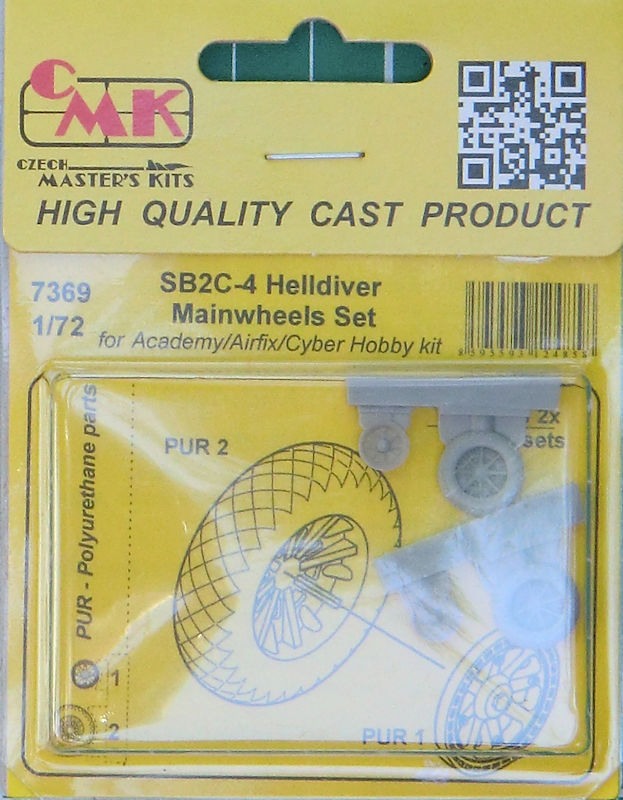 Für die Curtiss SB2C-4-Bausätze von ACADEMY/Airfix/cyberhobby hat CMK in 1/72 ein Set mit zwei Hauptfahrwerksrädern aus Resin herausgebracht.