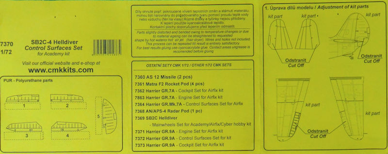 Für die Curtiss SB2C-Bausätze von ACADEMY/special hobby hat CMK in 1/72 ein Set mit den einzelnen Rudern aus Resin herausgebracht.