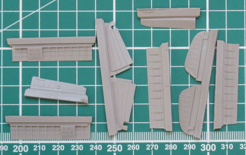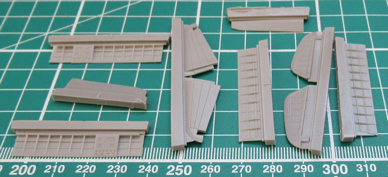 Der Guss der zehn Teile ist tadellos. Zum Einbau der Landklappen und Querruder muss zuvor die Säge angesetzt werden. Danach können diese in eingeschlagener Position angeklebt werden.