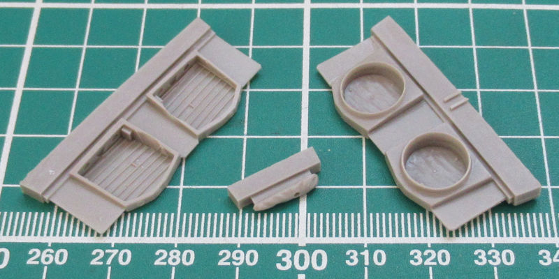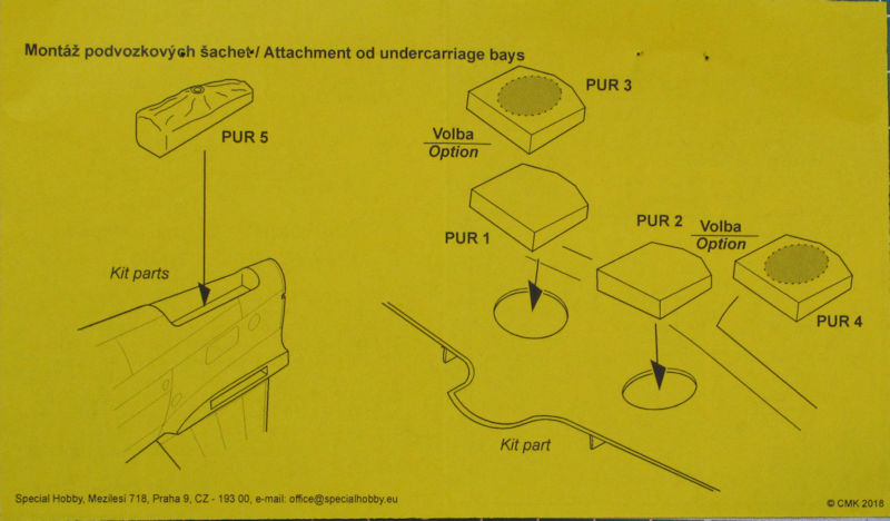 Es gibt zwei verschiedene Ausführungen der Hauptfahrwerksschächt. CMK geht leider nicht näher darauf ein. Diese Teile können ohne weitere Sägearbeiten eingebaut werden. Die Detaillierung ist deutlich besser als bei den Bausatzteilen..