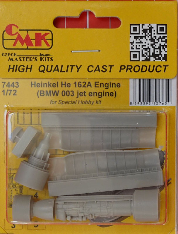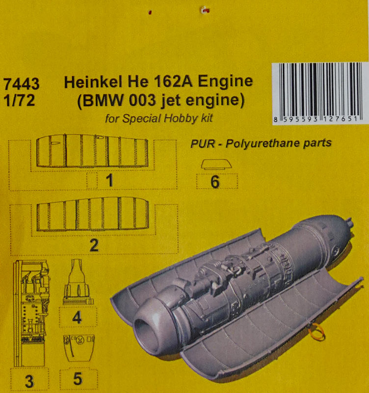 Der neue Bausatz der Heinkel He 162A in 1/72 von special hobby ist schon aus der Kiste recht ordentlich detaillier. Aber hier gilt: Das Bessere ist des Guten Feind! So hat man im hauseigenen Label ein Detailset für das BMW 003-Strahltriebwerk herausgebracht.