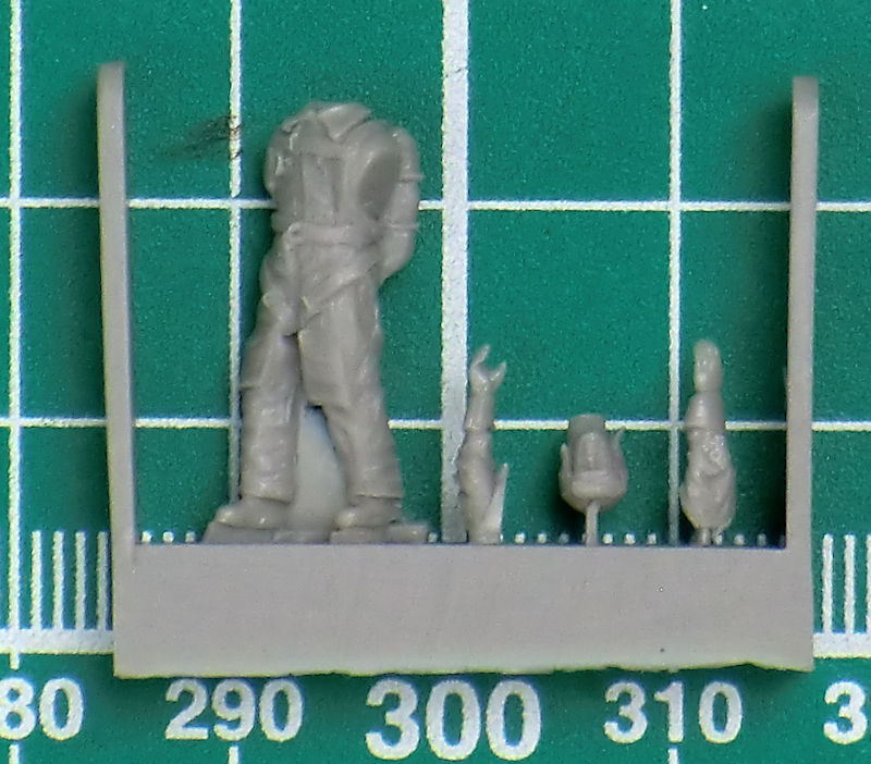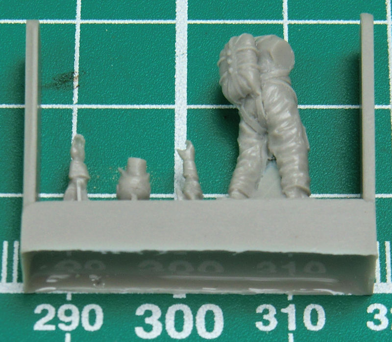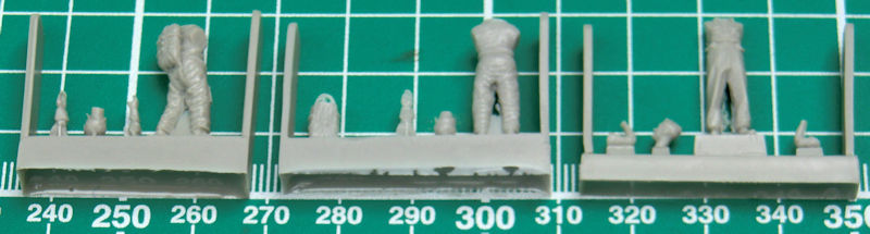 In der durchsichtigen Verpackung befinden sich zwölf sauber gegossene Resinteile. Die Figuren werden anhand der kleinen Abbildung zusammengefügt. Zuvor muss man noch bisschen Haut entfernt werden.