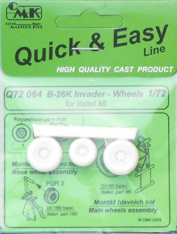 Für den nicht unumstrittenen Italeri-Bausatz der B-26K Invader (Siehe auch hier!) hat jetzt Quick & Easy ein eigenes Räderset herausgebracht. Es ersetzt die Bausatzteile. Wer jetzt hier auch die Hauptfahrwerksräder der KC-135 erwartet wird enttäuscht sein. Daher ist das Set eher für eine normale B-26 geeignet.