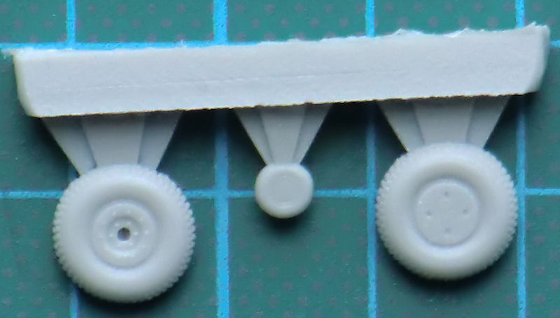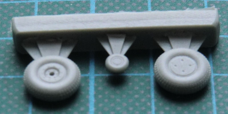 Es enthält die profilierten Hauptfahrwerksräder und ein Spornrad. Die Teile sind blasenfrei gegossen und die Angüsse sind sinnvoll gelegt.