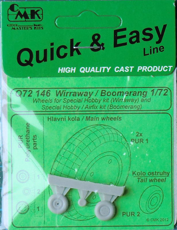 Für die Wirraway und Boomerang Bausätze von special hobby (und Airfix bei der Boomerang) bietet die CMK Tochter Quick & Easy ein Radset an. Die Räder haben ein schönes Profil.