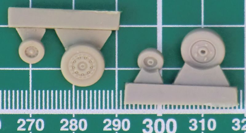 Es gibt hier vier fein abgegossene Räder. Eine Abplattung konnte ich nicht erkennen. Sie ersetzen die Bausatzräder und sind sehr gut detailliert.