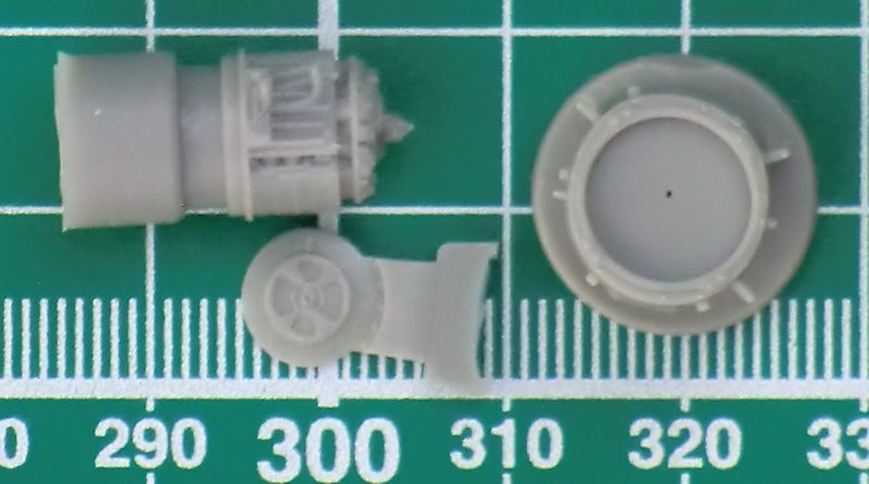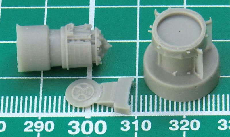 Es gibt hier drei sehr schön gegossene Resinteile. Da der Rumpfbug an der passenden Stelle getrennt ist, muss hier auch keine Säge angesetzt werden.