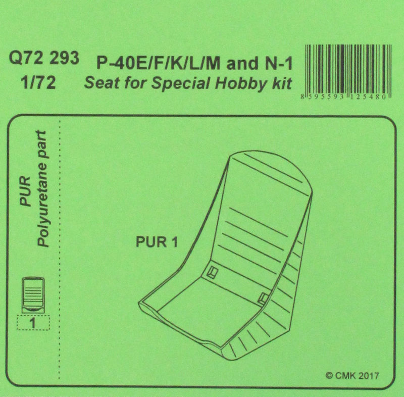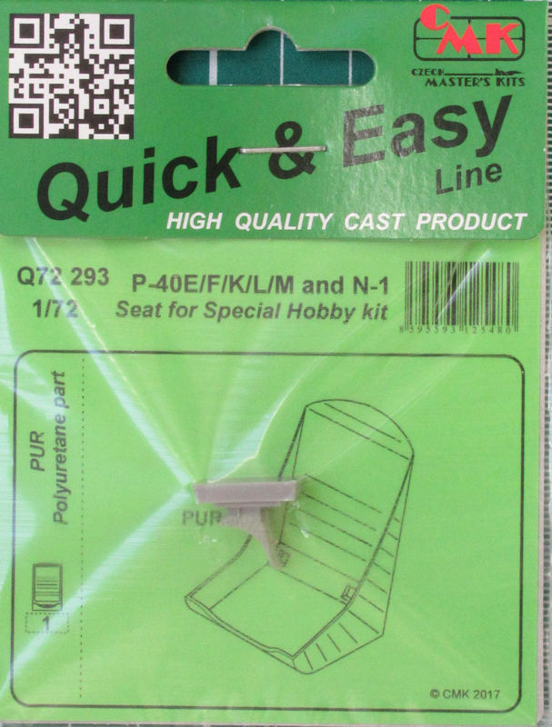 In der Reihe Quick&Easy ist bei CMK mehrere Resindetailsets für die hauseigenen(special hobby) Curtiss P-40-Bausätze in 1/72 herausgebracht. Dieses beinhaltet einen Pilotensitz.