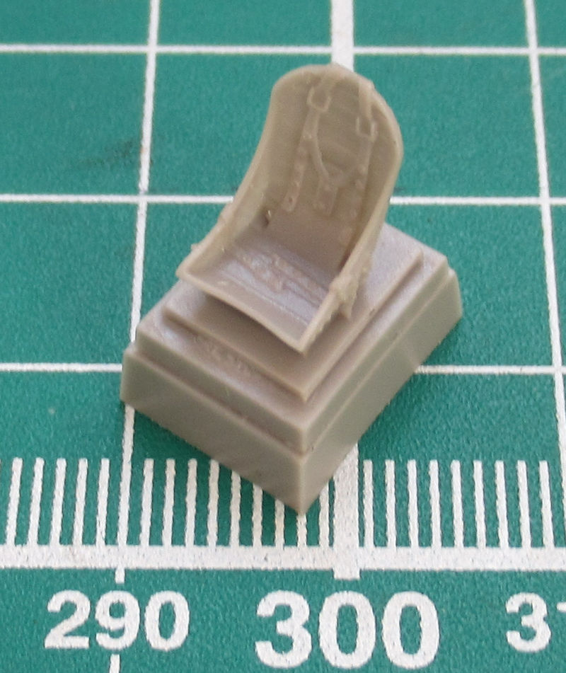 In der durchsichtigen Verpackung befindet sich ein sauber gegossenes Resinteil. Der Sitz hat schöne Strukturen und beinhaltet anmodellierte Sitzgurte.