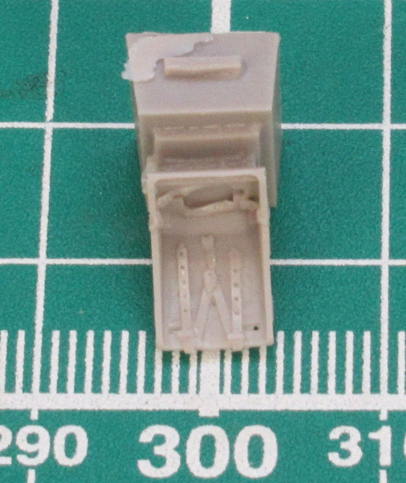 In der durchsichtigen Verpackung befindet sich ein sauber gegossenes Resinteil. Der Sitz hat schöne Strukturen und beinhaltet anmodellierte Sitzgurte.