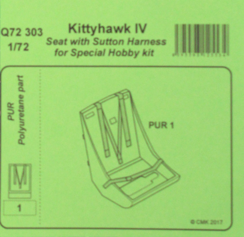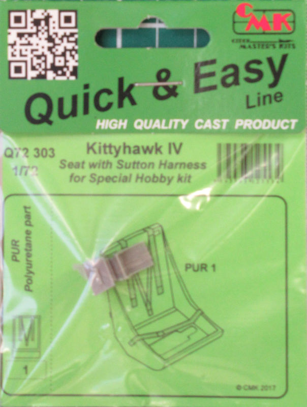 In der Reihe Quick&Easy ist bei CMK mehrere Resindetailsets für die hauseigenen(special hobby) Curtiss P-40-Bausätze in 1/72 herausgebracht. Dieses beinhaltet einen Pilotensitz für die Kittyhawk IV.