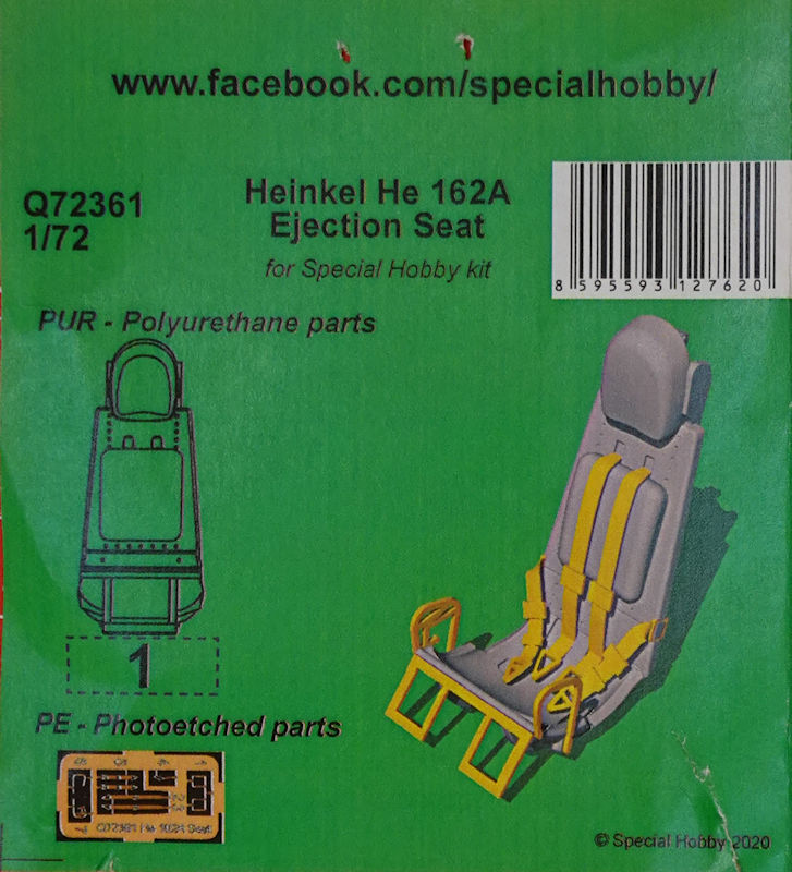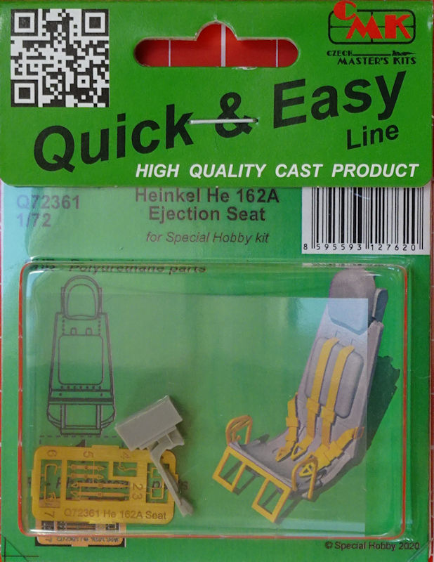 Für die sehr gelungene Heinkel He 162 von special hobby in 1/72 liefert das eigene Haus unter dem Label Quick & Easy einen Schleudersitz. Das tut man obwohl das Spritzgussteil im Bausatz sehr gelungen ist. Hier gild: Das Bessere ist des Guten Feind!