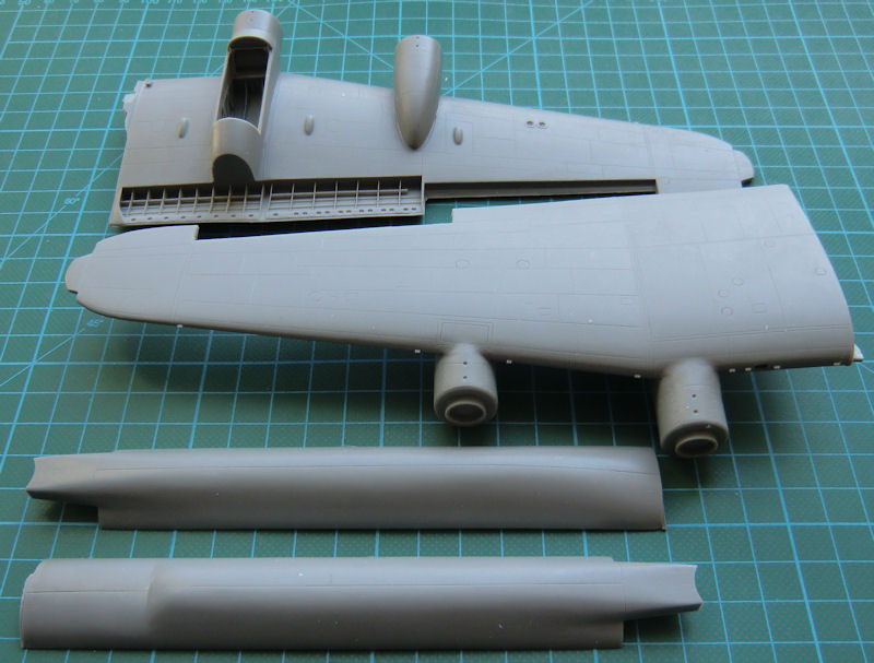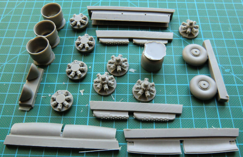 Dieser Conversionsbausatz ist eine neue Klasse für sich. Der Abguss der Resinteile ist so hervorragend wie ich es noch nie in dieser Klasse gesehen habe. Es gibt nicht nur feinste Strukturen, sondern die beiden Tragflächenhälften zeigen was heute im Resinguß möglich ist. Alle Triebwerksgondeln sind mit anmodelliert und die Hauptfahrwerksschächte sind mit vielen Details sowie Hinterschneidungen perfekt gegossen. Natürlich hat man bei CMR auch die V-Stellung der äußeren Tragfläche gleich mit korrigiert. Die Landeklappen liegen separat bei und natürlich sind auch die inneren Strukturen perfekt wiedergegeben. Schöne Abbildungen der Originale sind auch die Motoren. Trotzdem müssen noch einige Kleinigkeiten selbst angefertigt werden. Dafür hat CMR extra ein Vorbildfoto des Bristol Hercules beigefügt.