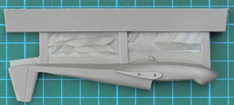Der Guss der Teile ist tadellos. Hier liefert man phantastische Arbeit, die ein Maßstab für andere Garagenfirmen ist. Der Rumpf ist im Cockpitbereich teilweise hohl gegossen. Im Cockpit gibt es neben mehrfarbig bedruckten Sitzgurten u.a. zwei Instrumentenbretter sowie Seitenruderpedale.