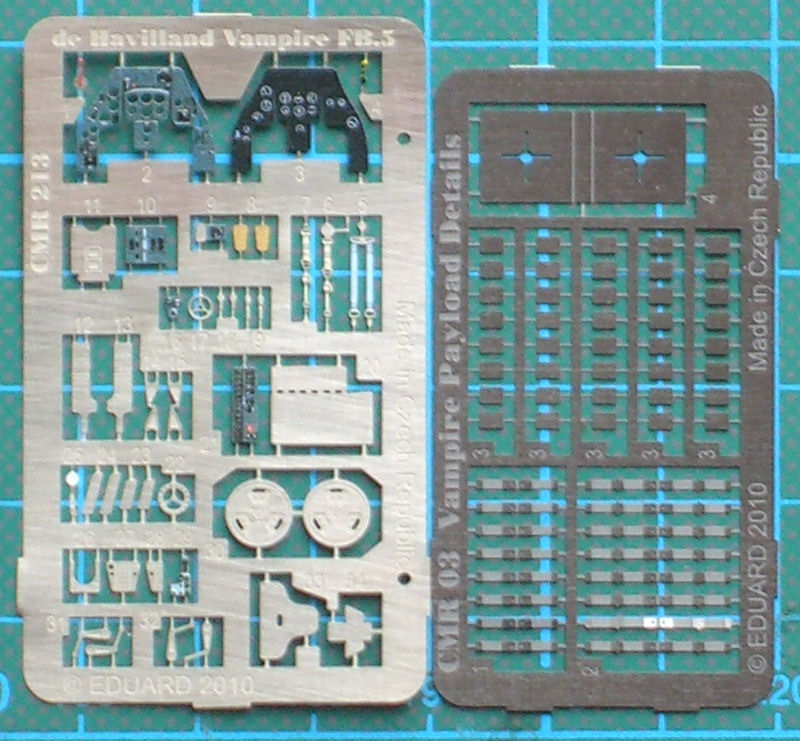 Bausatz: CMR setzt kontinuierlich die Vampire Reihe fort. So kommen auch Versionen heraus, die es bisher noch nicht in Spritzguss gab oder gibt. Diese Bausatzreihe spielt auch in einer anderen Liga als die neuen Amodel-Spritzgusskits. Das ist ein High-End-Bausatz für Modellbaufreaks!
