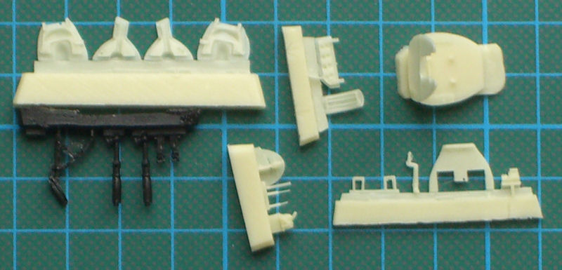 Das Cockpit ist ein Bausatz für sich. Hier gibt es eine Menge farbiger Fotoätzteile. Diese müsse allerdings auch noch durch Falten in Form gebracht werden. Nicht vergessen sollte man nicht das Buggewicht. Die Bauanleitung nennt aber kein Gewicht. Hier ist der verbleibende Hohlraum mit „Blei“ zu füllen.