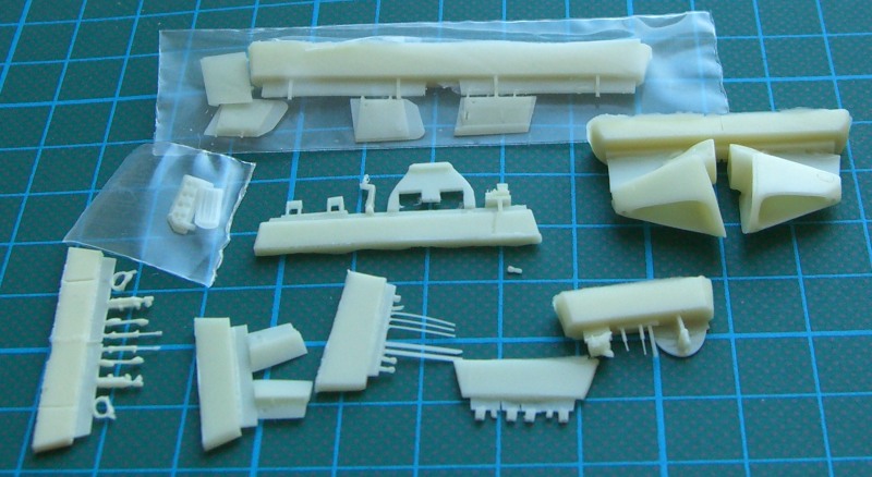 Schon beim Betrachten der Bauteile ist klar: Hier gibt es wieder einen Bausatz für den fortgeschrittenen Modellbauer. Der Cockpitbereich ist gut mit Resin- und Ätzteilen detailliert. Nicht vergessen darf man das Buggewicht. Angaben zur Menge fehlen leider in der Bauanleitung. Hier gilt so viel wie möglich. Interessant ist die Option für die „City of Vancover“. Hier gibt es einen separaten Rumpf, der eine Öffnung für ein zusätzliches Klarsichtteil im Rumpfbug besitzt. Toll! Natürlich hat CMR auch an die beiden Zusatztanks der FMk. 3 gedacht und sie liegen jeweils aus einem Stück gegossen bei.