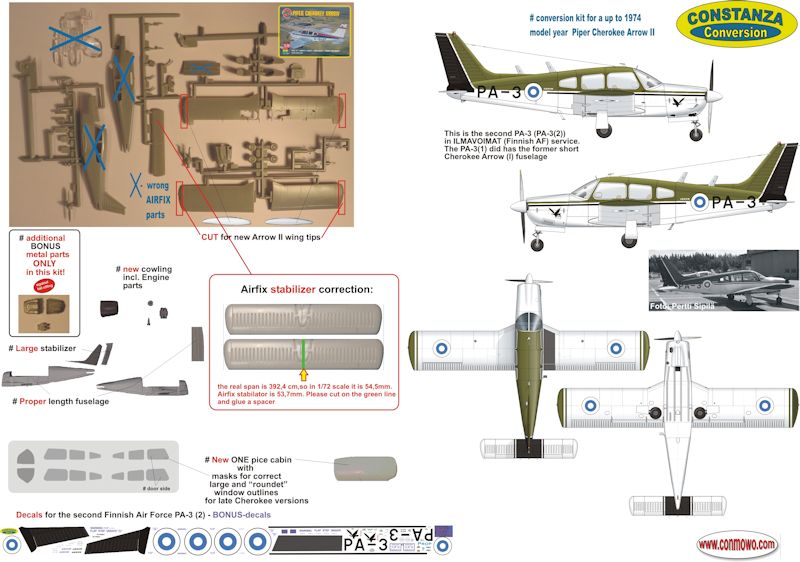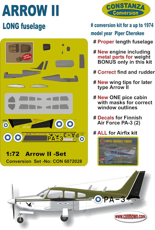 Bausatz: Seit vielen Jahren hat Airfix ein PA-28 Arrow II genannten Typ (Modellnamen wurden bei Piper übrigens oft geändert) im Programm die bisher wohl den Ansprüchen der Modellbauer genügte. Heute stellen sich die Fragen nach Detail- und Originaltreue allerdings deutlich differenzierter.