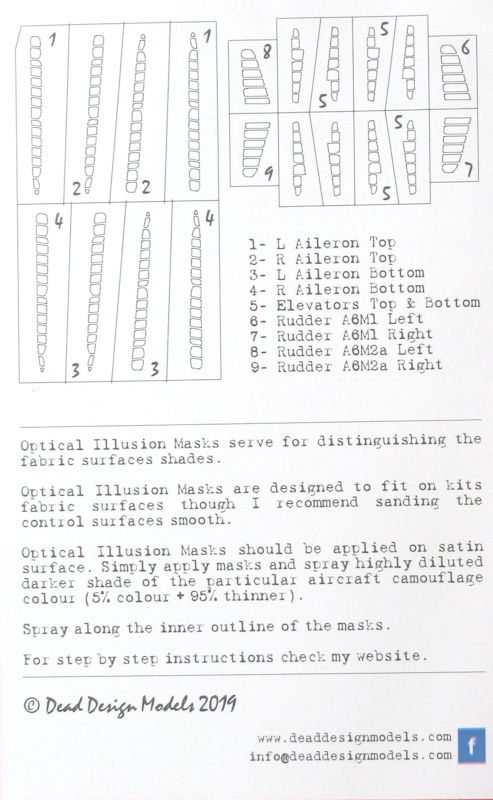 Für die sehr gelungenen Bausätze der Mitsubishi A6M von FineMolds in 1/72 hat DEAD Design models ein Set mit Masken für die Ruder herausgebracht. Es enthält Vinylmasken und die Bauanleitung.