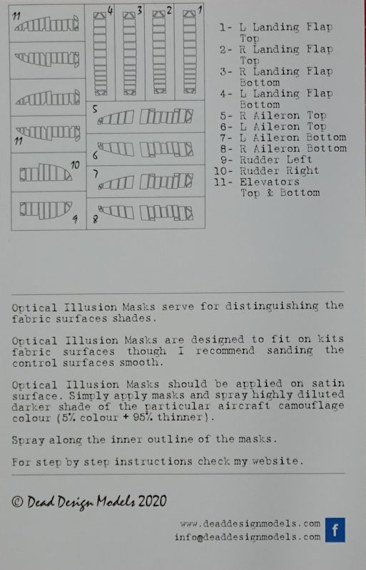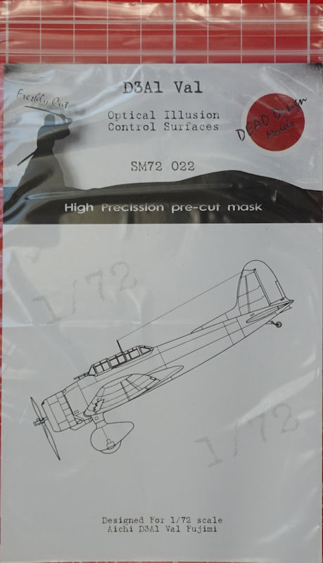Für die verschiedenen Auflagen der Aichi D3A1 Val von Fujimi in 1/72 hat DEAD Design models ein Set mit sog. Optical Illusion Control Surface herausgebracht. Es enthält Vinylmasken und die Bauanleitung.