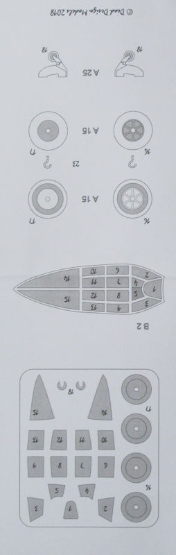 Die Bauanleitung zeigt wie alles gemacht wird und ist sehr übersichtlich. Es gibt auch Masken für die Räder des Hauptfahrwerks.