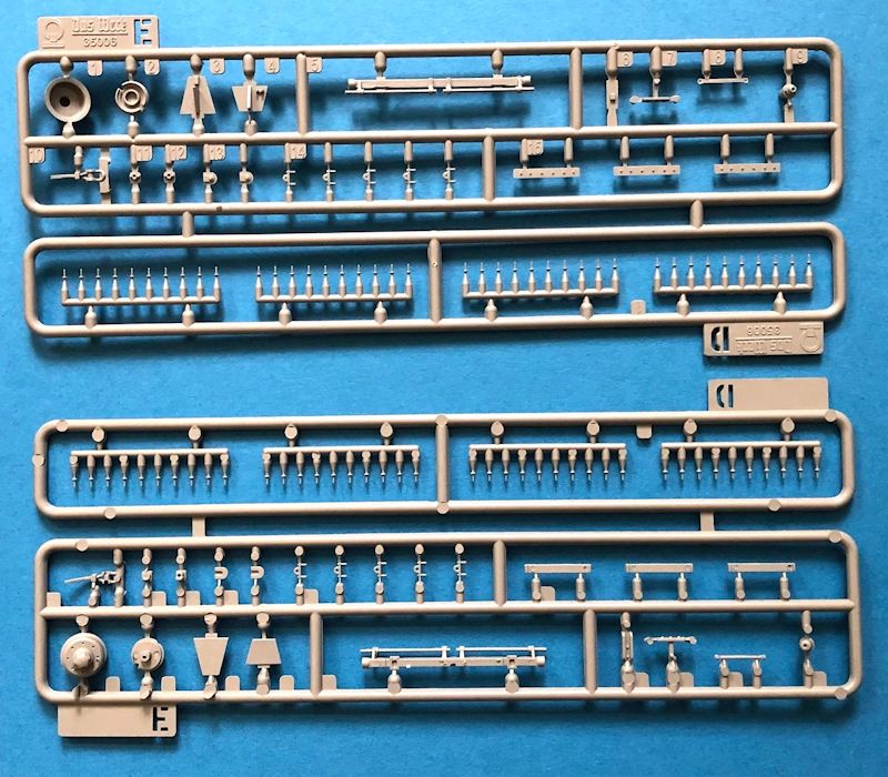 Der neue Bausatz präsentiert sich wieder in einem sehr schön gestalteten Stülpkarton, der sich durch eine hochwertige Bedruckung mit dem Hersteller Logo und dem Namen des Bausatzes auf dem Deckelbild von den gängigen Layouts der Konkurrenten deutlich abgrenzt. Im Karton findet man Sauber verpackt 20 Gussrahmen aus grauem Plastik sowie fünf Metallprofile und einen Abziehbilderbogen. Nach eingehender Durchsicht aller Teile und dem Abgleich mit den mir vorliegenden Dienstvorschriften kann der Daumen ganz nach oben gerichtet werden. Sebastian Debold und MBK haben bei diesem Plastikbausatz die kleinen Fehler des Resinbausatzes beseitigt und darüber hinaus noch weitere sehr schöne Details ergänzt.