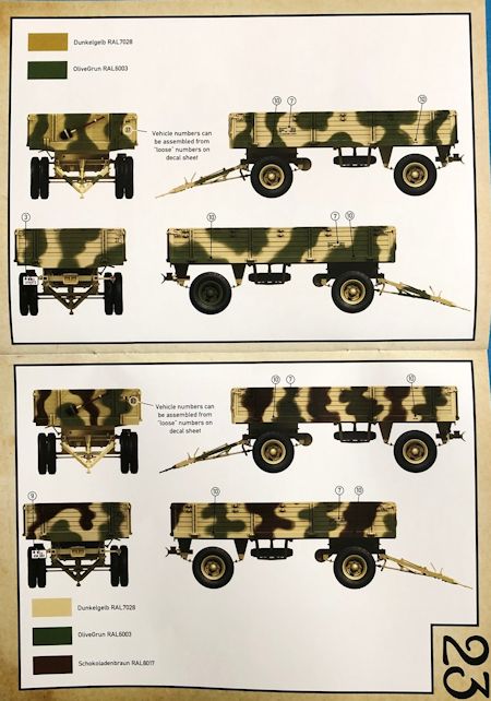 Unsicher bin ich mir in Bezug auf die Korrektheit der Darstellung des Haltegestänges für den Ersatzreifen, der unter dem Anhänger angebracht war. Wahrscheinlich existierten hier unterschiedliche Ausführungen, jedoch zeigt die Dienstvorschrift ein anderes Layout, das man sich aber problemlos selbst erstellen kann.