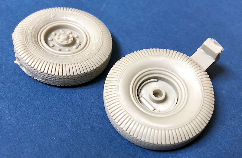 Bei diesem Radsatz findet man sehr schön gefertigte Reifen, bei denen insbesondere die falsch interpretierten Felgen der hinteren Reifen optimal reproduziert wurden. Ebenso sind alle Reifen in einem belasteten Zustand ausgeführt.