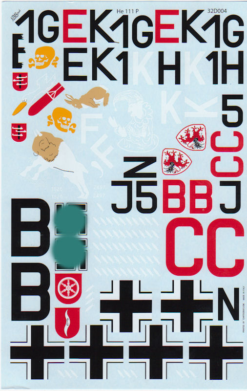 Fazit: Ein sehr interessanter Decalbogen für den Modellbauer, der schon mal die etwas „andere“ He 111 in 1/32 plant. Sehr empfehlenswert.