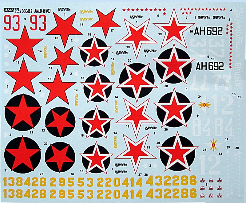 AML ist neben einer Bausatzreihe in 1/72 und den Linien mit Resin und Ätzteilzubehör vor allem für seine Abziehbilder bekannt. Insbesondere zu Vorbildern aus der ehemaligen Sowjetunion gibt es hier inzwischen ein recht umfangreiches angebot, sowohl in 1/72 als auch in 1/48. Besoders gut gefällt mir, dass AML es versteht, zu aktuellen Bausätzen aus "dem Osten" ansprechenden und vor allem gut zu verarbeitenden Decals herzustellen.