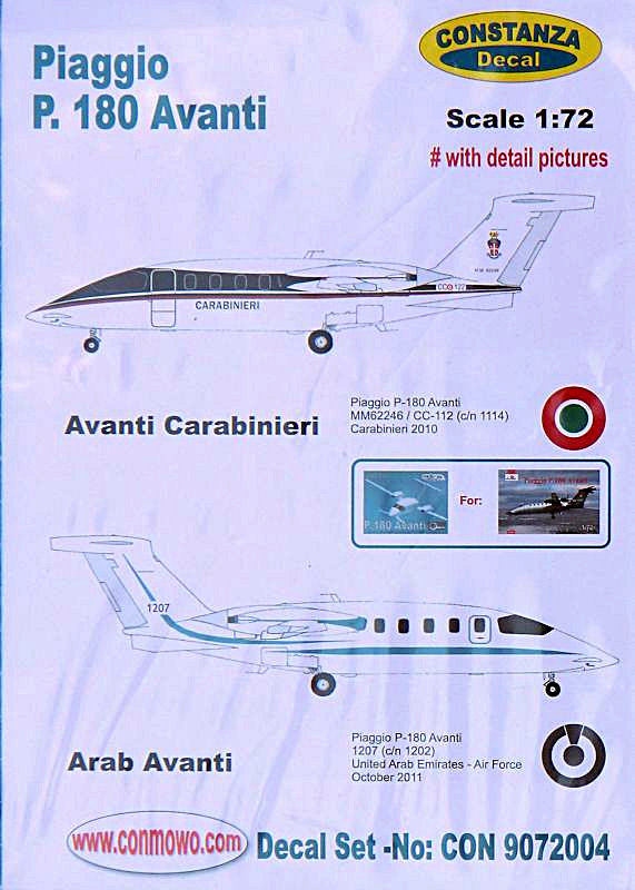 Für die Piaggio P.180 Avanti von Amodel hat CONSTANZA ein Decalsatz herausgebracht. Damit können andere Bamalungsvarianten dargestellt werden.