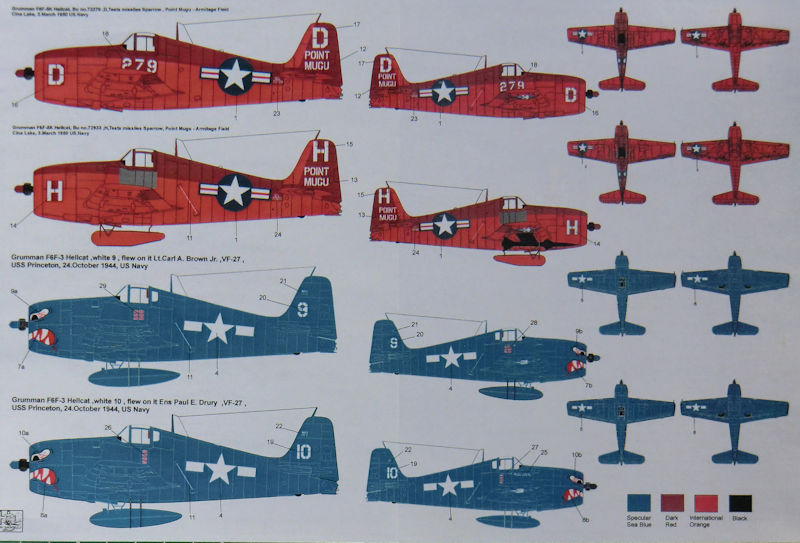 Für die erschienenen Bausätze der Grumman Hellcat in 1/72 hat H-MODELS Decals aus Tschechien verschiedene Decalsätze herausgebracht. Dieser enthält farbenfrohe Drohnen aus dem Jahr 1950 und Einsatzmaschinen aus dem WK 2.
