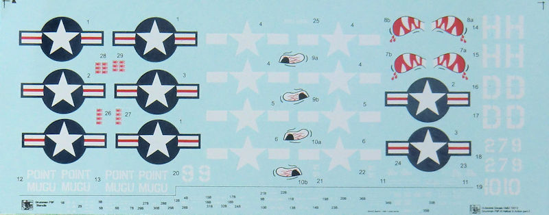 Die Decals sind ohne Versatz auf hellblauem Trägerpapier gedruckt. Es gibt natürlich auf zwei Seiten Hinweise zum Anbringen der Markierungen und Wartungshinweise.