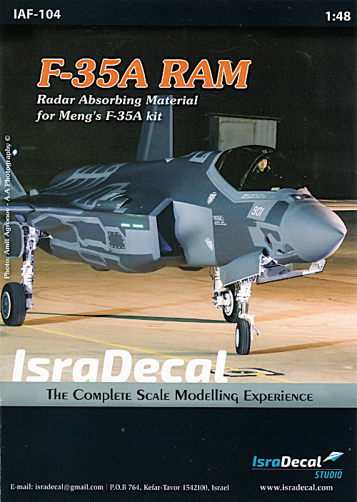 So langsam beginnt die Auslieferung der F-35A auch an die Partner der USA. Israel hat bereits die ersten Exemplare erhalten und daher hat sich auch der israelische Hersteller IsraDecal dieses Themas angenommen. Mit diesem Satz können die mit RADAR absorbierendem Material (RAM) beschichteten Bereiche der F-35A von Meng dekoriert werden.